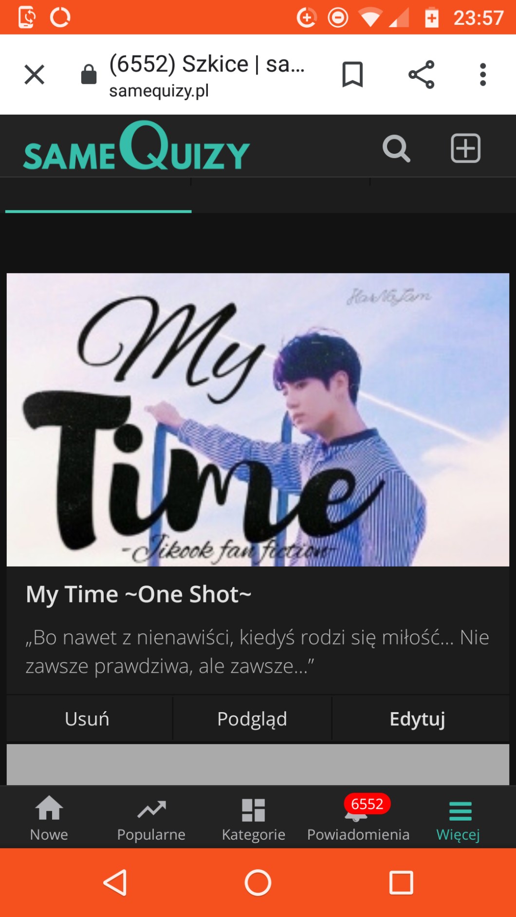 AUTOR•Jutro wleci nowy One Shot, i tak jak mówiłam to będzie ostatnie opo o Jikook i pewnie jedno z ostatnich o BTS… Potem w planach mam: Ateez, Exo, Red Velvet, TxT, Got7 i Pentagon… No i oczywiście Stray Kids ale tego raczej można się po mnie spodziewać 😅