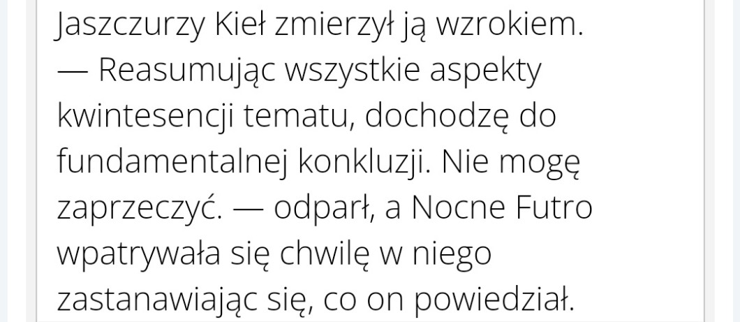 AUTOR•Reasumując wszystkie aspekty kwintesencji tematu dochodzę do fundamentalnej konkluzji. Nie mogę zaprzeczyć