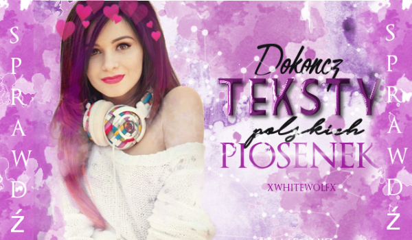 xWhiteWolfx Dokończ teksty polskich piosenek! Sprawdź! xWhiteWolfx • 9 lat temu • #melodia #piosenki #polskie #sywliagrzeszczak #wiedza 5 2 Rozpocznij quiz