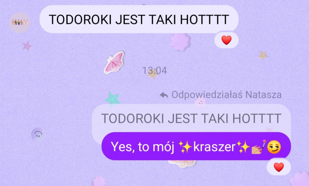 Gadałam jej o tym 2 dni i zaczęła oglądać boku no hero academia😍😍😍😍😍