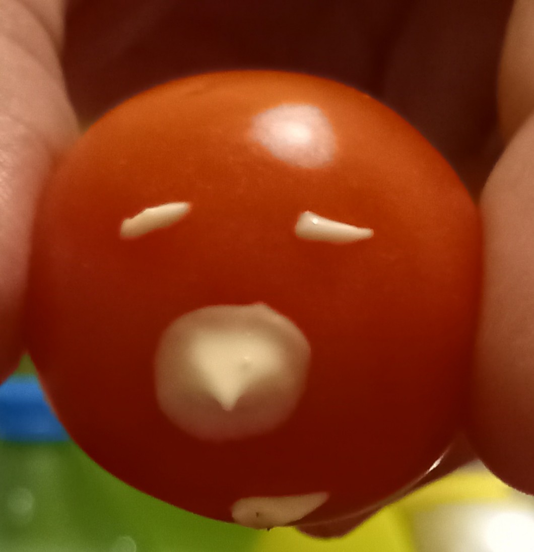 (Tak, pomidor wpadł mi do majonezu, więc zrobiłam oczka i usta xd)