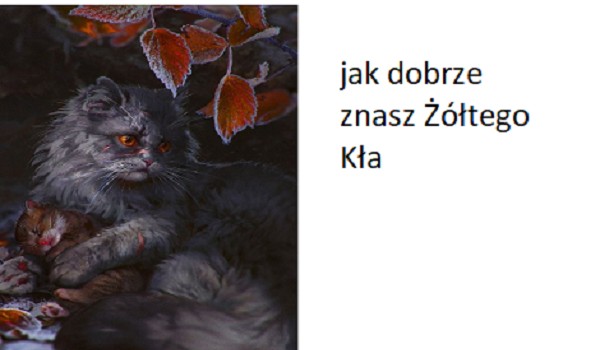 YellowFang dokończ imiona kotów z serii ,,wojownicy” przekonaj się czy dasz radę YellowFang • 4 lata temu • 1 0 Rozpocznij quiz