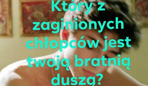 Zaginionechopytakieo Który z zaginionych chłopców jest twoją bratnią duszą? Wszyscy chłopcy na świecie znikają, a kobiety, żeby miały chopa muszą zrobić kłiz Zaginionechopytakieo • 6 lat temu • #bob #brzoskwinie #budowlanka #emocje #fanfiction #friz #mekeup #milosc #monsterhigh #onedirection #styl #youtube 0 0 Rozpocznij quiz