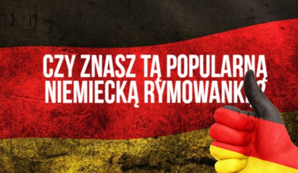 hfgjhfefygwfyfeyu Czy znasz tą popularną niemiecką rymowankę? Sprawdź czy znasz bardzo popularną niemiecką rymowankę? hfgjhfefygwfyfeyu • 7 lat temu • #emocje #inteligencja #jezyk #niemiecki #zagadki 16 11 Rozpocznij quiz