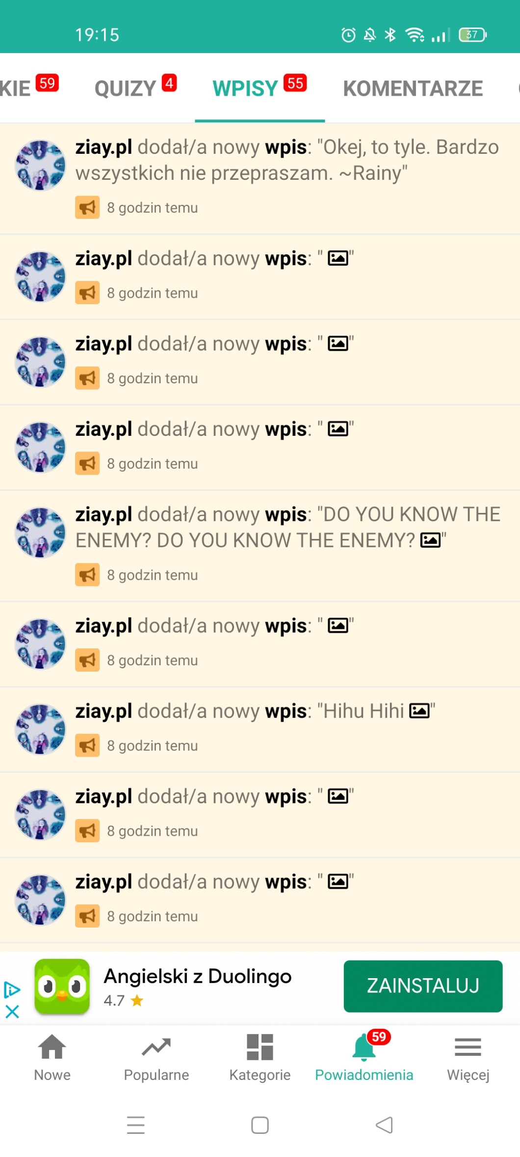 @ziay.pl siedzę właśnie w szkole na angielskim więc bywało lepiej ale jest okej xd a co tam u ciebie tajemniczy ktosiu?