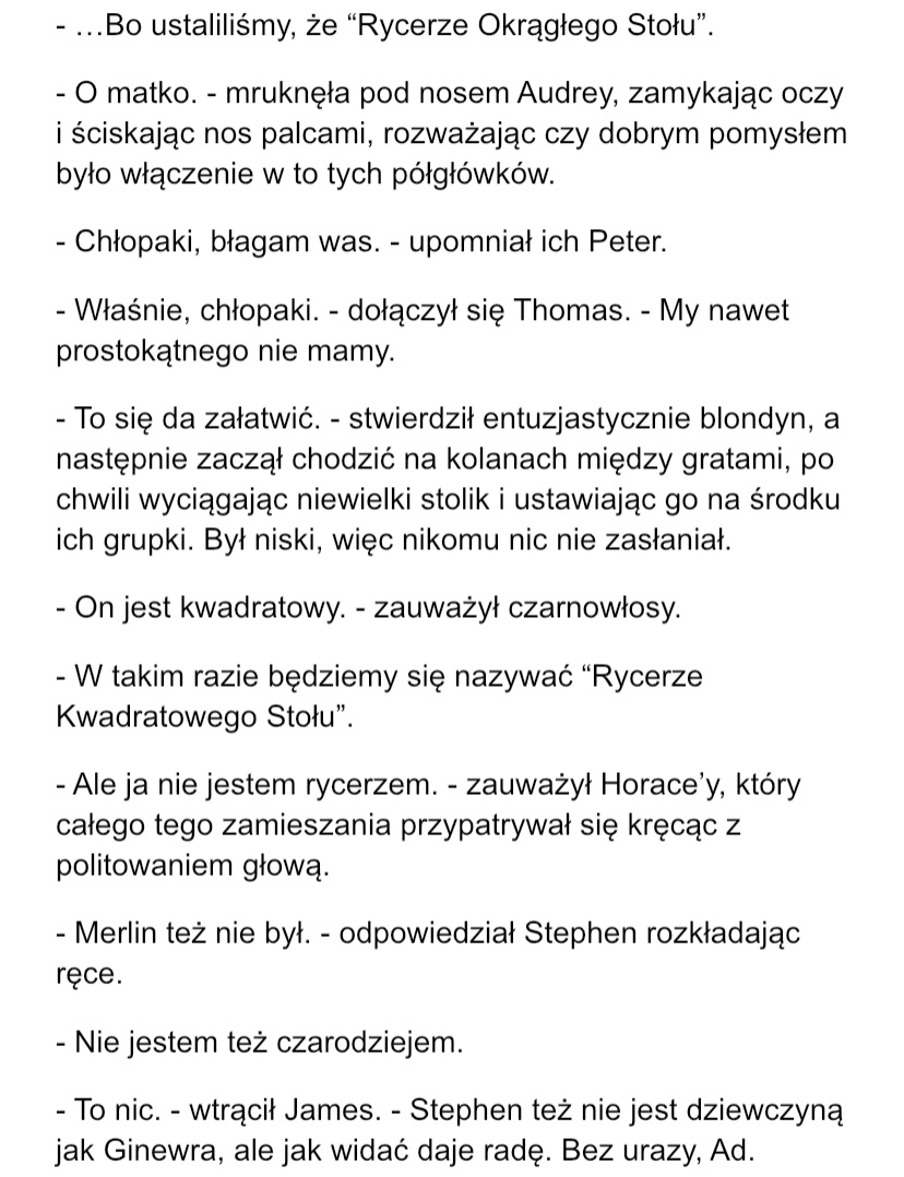 AUTOR•Czy jak już skończę pisać książkę i będę wysyłać ją do wydawnictwa (na co jeszcze trochę sobie poczekacie) będzie chcieli, bym udostępniła wam wstępnie pierwszy rozdział?