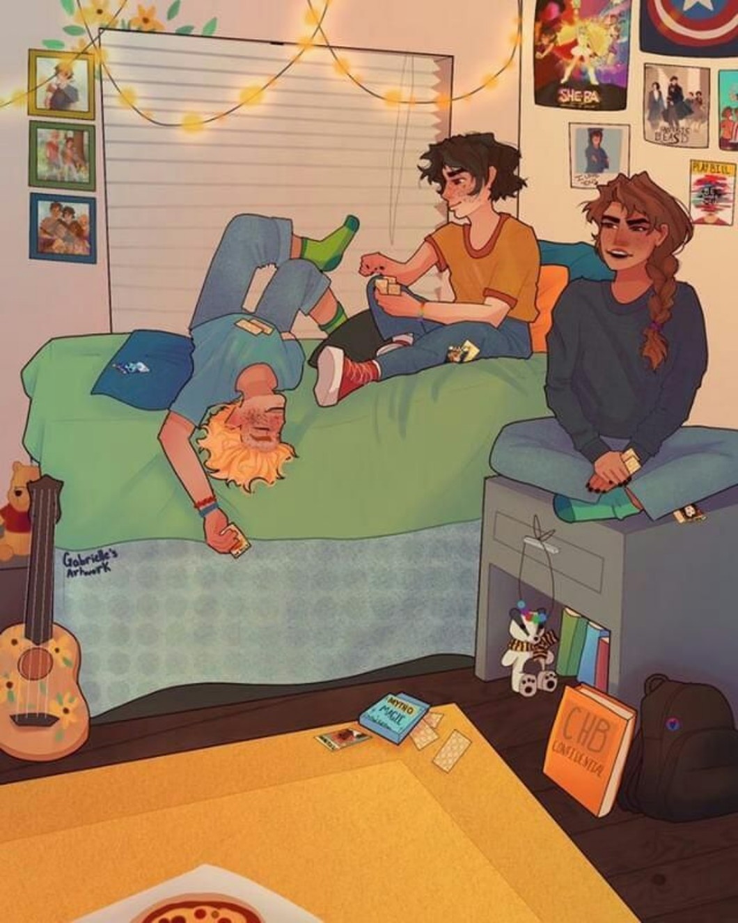 Szkoła, czytać, grać na ukulele na muzykę, odrabiać.