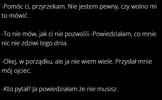 Że chyba zrobię serię, z każdej rozmowy mną i Fitza, że aż do uśmiania. Lecz zrobię tą serię, jak będzie więcej rozdziałów.