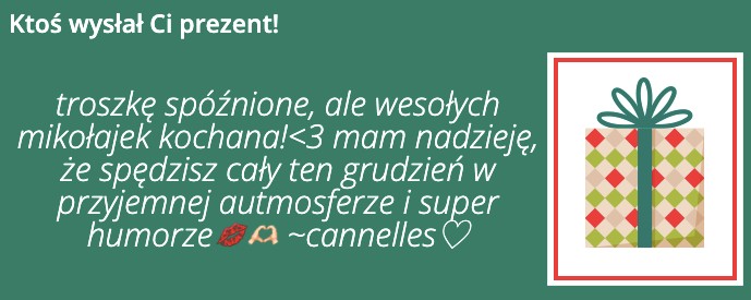 AUTOR•@cannelles DZIĘKUJĘ BARDZO KOCHANA 🥰 Gdzieś tam na profilu znajdziesz też prezent ode mnie, ale nie podpisany 🙈