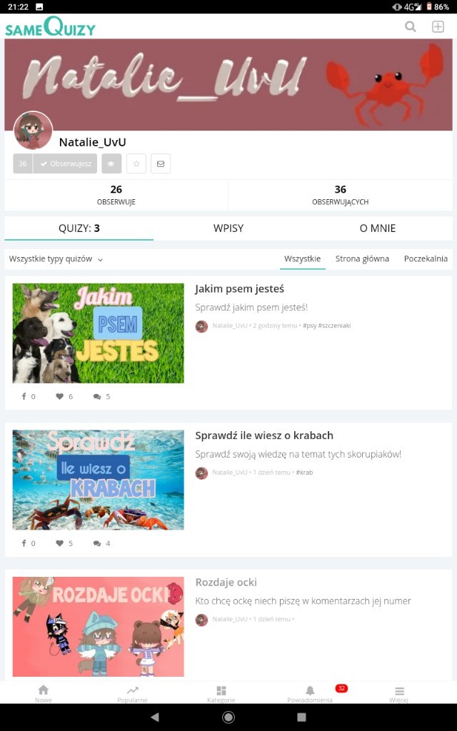 Który profil lepszy?@Superpieseczek@Bordercollie_psiaraKtóry profil lepszy?@xUszatkax@.Bright.Cat.Który profil lepszy?@Swiateczny kotek@K-popowy pies SzymalaCzy @Natalie_UvU ma przejść?TakNie 9 Super! 68 Obserwuj autora Dodaj do ulubionych Następny quiz za: 10 AnulujRozwiąż teraz Zgadnę, czy masz zagrożenie na ten semestr? Quiz w Poczekalni. Zawiera nieodpowiednie treści? Wyślij zgłoszenie Zgłoś za plagiat Zgłoś za nieodpowiednie treści Wyślij