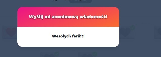 yyy what?..czy to na pewno do mnie...?..Dziękuję! 😊 właściwie to zaczynają się w lutym ale ok :D..No najpierw jadę na tydzień na narty o potem do babci chyba..yyy co?..JUŻMÓWIŁAM W OSTATNIM CHUMPICKU ŻE N MAM!!!! ALE CHYBA ROXY ALBO... nie... WILLIAM AFTON!!!!twój mąż.jest oki, :) A CO?!..Ooo, dziękuję!!! 🥰🥰🥰.. 6 Super! 68 Obserwuj autora Dodaj do ulubionych Następny quiz za: 10 AnulujRozwiąż teraz Jakim babcinym przekleństwem jesteś? Quiz w Poczekalni. Zawiera nieodpowiednie treści? Wyślij zgłoszenie Zgłoś za plagiat Zgłoś za nieodpowiednie treści Wyślij