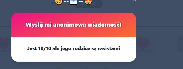 Z tym że jest 10/10 ale coś tam np jak tu że jego rodzice są rasistami to chodzi o te że masz ocenić