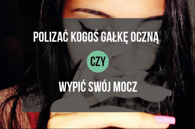 Wygrać w loterii czy żyć dwa razy dłużejWygrać na loteriiżyć dwa razy dużejLays czy TopLaysTopPolizać kogoś gałkę oczną czy wypić swój moczPolizać kogoś gałkę ocznąwypić swój moczwyssać krew z zużytego tampona czy całować się z publiczną toaletąwyssać krew z zużytego tamponacałować się z publiczną toaletążyć bez elektroniki czy żyć bez przyjaciółżyć bez elektronikiżyć bez przyjaciółmieć biegunkę w czasie swojej ceremonii ślubnej czy mieć biegunkę w czasie swojej nocy poślubnejmieć biegunkę w czasie swojej ceremonii ślubnejmieć biegunkę w czasie swojej nocy poślubnejwypić krew z miesiączki swojej przyjaciółki czy wycisnąć komuś pryszczawypić krew z miesiączki swojej przyjaciółkiwycisnąć komuś pryszczajeść tylko psie przysmaki czy jeść tylko kocią karmęjeść tylko psie przysmakijeść tylko kocią karmę 0 Super! 2 Obserwuj autora Dodaj do ulubionych Następny quiz za: 10 AnulujRozwiąż teraz Ogień i Lód #11 Quiz w Poczekalni. Zawiera nieodpowiednie treści? Wyślij zgłoszenie Zgłoś za plagiat Zgłoś za nieodpowiednie treści Wyślij