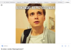 co byś wolałŻeby Maja była z grubymŻeby Maja była z Berkowskimco byś wolałŻeby Agata nie była z BerowskimŻeby Mariola nie była z HubertemKogo woliszMajeAgateMarioleKogo woliszBerkowskiegoHubertaGrubegoCzy Hubert oświadczy sie Mariolitakniejaką postać byś usunołBerkowskiegoHubertaGrubegomajęAgatęMariole 1 Super! 3 Obserwuj autora Dodaj do ulubionych Następny quiz za: 10 AnulujRozwiąż teraz Co byś wolał Nieprzygotowani Quiz w Poczekalni. Zawiera nieodpowiednie treści? Wyślij zgłoszenie Zgłoś za plagiat Zgłoś za nieodpowiednie treści Wyślij