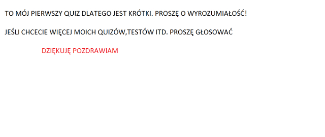 Co byś wolał?Skoczyć na bungee i nie przeżyćSkoczyć na bungee ale mieć 1% szansy na przeżycieCo byś wolał?Być ładnym ale brzydko się ubieraćbyć brzydkim ale ładnie się ubieraćCo wolisz?MatematykaHistoriaCo byś wolał?mieć urodziny co miesiąc ale ich nie obchodzić i nie dostawać prezentówmieć urodziny raz w roku i móc je obchodzić i dostawać prezentywybierzTAK :)NIE :( 1 Super! 2 Obserwuj autora Dodaj do ulubionych Następny quiz za: 10 AnulujRozwiąż teraz Jaką istotą nadnaturalną staniesz się w przyszłości? Quiz w Poczekalni. Zawiera nieodpowiednie treści? Wyślij zgłoszenie Zgłoś za plagiat Zgłoś za nieodpowiednie treści Wyślij