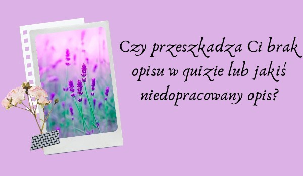 Tak, miniaturka ma zachęcać użytkownika do rozwiązania quizu, a takie nie są według mnie zbyt ładne.Nie, niektórzy mogą nie mieć ochoty, lub talentu i czasu do wykonywania grafikTak, przez to ciężko się czyta, co lekko zniechęcaNie, zwracam uwagę na ogólną całość i szybko zapominam o małych pomyłkach. W końcu każdy ma do nich prawoTak, grafiki powinny być odpowiednio dobrane do tematu quizuNie, według mnie jest to obojętne, liczy się ogółTak, ponieważ nie widać co jest na zdjęciu przedstawione, psuje to efekt i wydaje się brzydkieTak jak w powyższym pytaniu, nie zależy mi na całkowitej perfekcji rozwiązywanego przeze mnie quizuTak, opis powinien zachęcać, lub jasno informować o czym jest quiz.Nie, nie zwracam na to uwagi, ważne, że quiz jest ciekawy ^^Tak, bez nich nie możemy odnaleźć quizu o interesującej nas tematyceNie, nie korzystam z nich tworząc, lub wyszukując interesujący mnie quizTak, za dużo hashtagów źle wygląda i powoduje dezorientacjęTak, denerwuje mnie to wyskakujące okienkoNie, nic nie mam do takiej formy reklamyNie, jest to fajna forma rozrywki zachęcająca do zainstalowania ów aplikacjiTak, jest to dość wkurzające. Takiego typu rzeczy nie powinny się pojawiać na SQNie, gdyby dostępna była taka funkcja wyniknęłyby z tego różne kłótnie i kłopotyTak, byłoby fajnie znać osobę, której nie podoba się nasz profilTak, prowadzi to do usuwania się wielu wspaniałych użytkowników i zaburzania ich poczucia wartości oraz psychikiNie, nie spotkałem/am się z czymś takim i uważam, że nie jest to aż tak poważneTak, takie zachowanie powinno być karane! Nienawidzę ludzi, którzy przywłaszczają sobie swoją pracę!Nie, ponieważ sam/a się jeszcze z czymś takim nie spotkałem/am // niezbyt wiem co to jestTak, ponieważ w ich "tłumie" nie mogę dostrzec tych ważniejszych wiadomościNie, ponieważ osobiście nie mam nigdy spamu w powiadomieniachnie, lubię spam, mam co sprawdzać i jak wykorzystać swój czasNie, ponieważ po prostu go ignoruję czyszcząc powiadomieniaTak, trudno się później zorientować z jakim użytkownikiem mamy do czynieniaNie, to ich decyzje, ja się do tego dostosujęTak, przecież aż tyle na pewno nie jest potrzebne!Nie, to nawet lepiej // jest mi to obojętne, niech robi jak chceNie, z chęcią mu pomogę lepiej zrozumieć na czym to wszystko polega ^^Tak, to dość męcząceTak, to zwykłe oszustwo. Po co obsować, skoro konto i tak nas nie obchodzi? W ten sposób zdobywamy tylko fałszywych obsów...Nie, jest to fajny sposób na większą liczbę obserwacjiTak, to dość dziwne i zdecydowanie nie popieram takiego zachowaniaNie, im więcej tym lepiejMiłego dnia! ^^Miłej nocy! ^^Miłego wieczoru! ^^ 20 Super! 183 Obserwuj autora Dodaj do ulubionych Następny quiz za: 10 AnulujRozwiąż teraz Jaką kocią cechę posiadasz? Quiz w Poczekalni. Zawiera nieodpowiednie treści? Wyślij zgłoszenie Zgłoś za plagiat Zgłoś za nieodpowiednie treści Wyślij