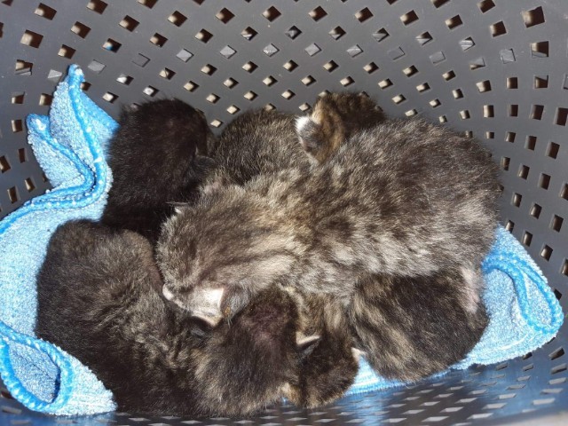 Słyszałam Piski kotów poczym przyszła do mnie sąsiadka i sama zaczęła mówić że chyba jej kotka okociła się u nas. Więc od razu poszłam szukac. Szukałam ok. 3 godz Ale po 3 godz je znalazłam! Było ich 5. Porobiłam im zdjęcia i oddałam sąsiadce. Poniżej zdjęcia ich