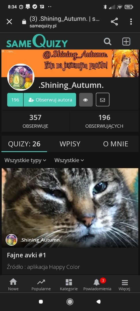 Nazwa i wystrój Nazwa - 10/10 bardzo ładna, estetyczna, znaki specjalne dodają uroku. Wystrój - 8/ 10 Sądzę tak, ponieważ avek z tłem średnio pasują do siebie :( jak chcesz to poproś kogoś nawet mnie. Ale osobno bardzo ładnie się prezentują. Sugestia staraj się robić tło z elementem avkaZgadzam sięNie zgadzam sięWpisy Wpisy - Hmmm 8/10 tak, znów dlatego, iż, ponieważ, że są za, krótkie za to ładna estetyka. Polecam tak jak ja z 1 na tydzień zrobić taki dłuższy z krótkimi nie mam problemu ;)Zgadzam sięNie zgadzam sięO mnie O mnie - 10/10 są tam potrzebne informacje, Bardzo ładnie, estetycznie :)Zgadzam sięNie zgadzam sięQuizy Quizy- 5/10 oprócz opowiadań są to głównie niedopracowane Quizy. Oczywiście nie przejmuj się kochana moją opinią bo to moje zdanie i twój profil jest wspaniały jak każdy tylko czasem człowiek popełnia błędy :>Zgadzam sięNie zgadzam sięESTETYKA PROFILU - 17/20!Zgadzam sięNie zgadzam sięCałoocena - 58/70 Gratulacje kochana! To dobry wynik!Zgadzam sięNie zgadzam się 16 Super! 647 Obserwuj autora Dodaj do ulubionych Następny quiz za: 10 AnulujRozwiąż teraz Mój Halloweenometr zgadnie, czy jesteś gotowy na Halloween! Quiz w Poczekalni. Zawiera nieodpowiednie treści? Wyślij zgłoszenie Zgłoś za plagiat Zgłoś za nieodpowiednie treści Wyślij