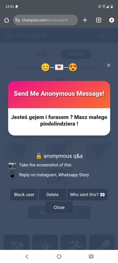 Czemu opisujesz siebie ?......Jestem samcem......Tak jakby nie zrozumialem...... 3 Super! 103 Obserwuj autora Dodaj do ulubionych Następny quiz za: 10 AnulujRozwiąż teraz Jaki kolor włosów powinieneś mieć według stereotypów? Quiz w Poczekalni. Zawiera nieodpowiednie treści? Wyślij zgłoszenie Zgłoś za plagiat Zgłoś za nieodpowiednie treści Wyślij