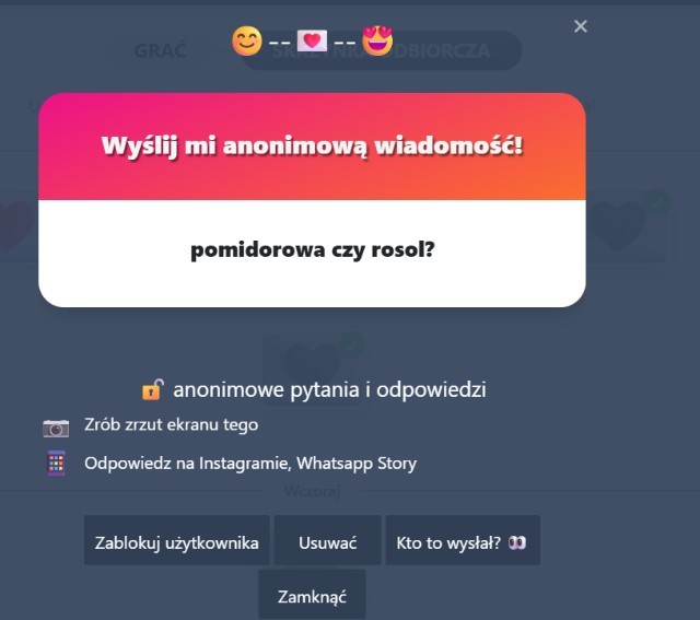 Kocham to moja ulu pizza🍕matchingo ty...!Pomidorówka!!!!!!!!!! 🍅matchingo ty...!Zależy ale dla mnie to normal porcja😊matchingty grubasie!!!!!!!!!! (tag wgl to jestem mega chuda)nwm chb manga o biczumatchingo ty...!Nie (nadal nie za bardzo wiem co to😭)matchingo ty...! wojanki górąDziecko?xdlolDziękuję bardzonmzc... 23 Super! 232 Obserwuj autora Dodaj do ulubionych Następny quiz za: 10 AnulujRozwiąż teraz Dokonaj jesiennych wyborów, a ja powiem Ci, który miesiąc jesieni będzie Twoim najbardziej udanym! Quiz w Poczekalni. Zawiera nieodpowiednie treści? Wyślij zgłoszenie Zgłoś za plagiat Zgłoś za nieodpowiednie treści Wyślij