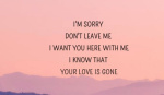 Don’t tell me that your love is gone That your love is gone Don’t tell me that your love is gone That your love is gone That your love is gone I know this isn’t easy (easy) That your love is gone