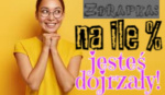 Na ile % jesteś dojrzały – zdrapka Britney143 • 5 lat temu • #dojrzaly #dorosly #zdrapka Jesteś dzieckiem czy może zaczynasz dorastać, w tym quizie możesz sprawdzić na ile % jesteś wystarczająco dojrzały żeby nazywać się dorosłym 15 7 Rozpocznij quiz