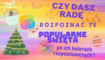 Dasz radę rozpoznać te popularne święta po ich kolorach rozpoznawczych? P.... • 5 lat temu • #zgadywanka Sprawdź jak dobrze znasz kolory popularnych świąt! 23 21 Rozpocznij quiz