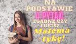 Na podstawie 4 pytań, zgadnę czy lubisz matematykę! Borisia • 5 lat temu • #matematyka Odpowiedz na cztery pytania, a ja zgadnę czy libisz matematykę! 7 2 Rozpocznij quiz