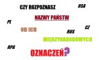 Czy rozpoznasz nazwy państw od ich międzynarodowych oznaczeń? Excal • 9 lat temu • #oznaczeniamiedzynarodowe #test Czy znasz takie skróty jak RUS, RPA, PL lub podobne? Jeżeli tak, to przekonaj się o tym, rozwiązując ten quiz! 0 0 Rozpocznij quiz