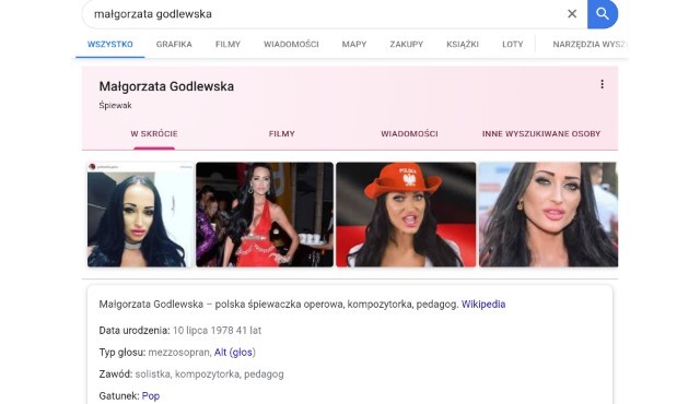 Małorzata Godlewska. Błąd - opis google dotyczy innej osoby.