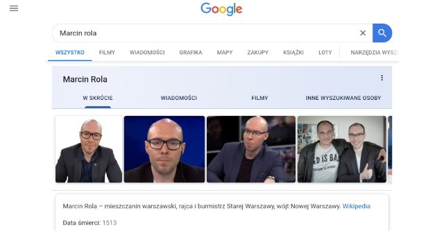 Marcin Rola. Błąd - opis google dotyczy innej osoby.
