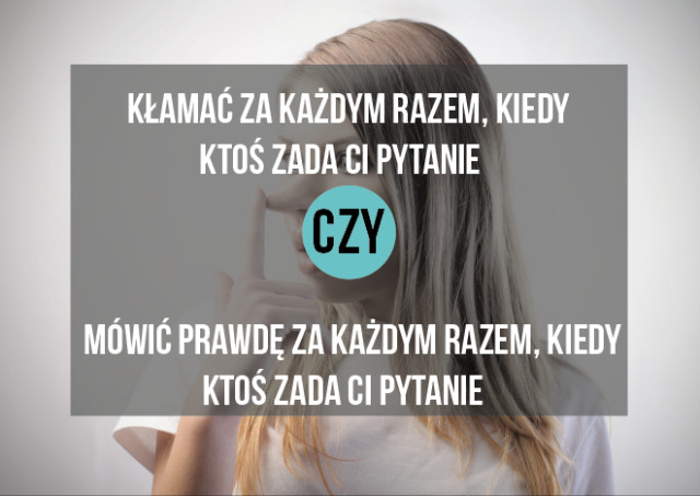 Co byś wolał?zostać zamknięty z pająkami w domu na 1,5 dnia, ale z internetemzostać zamknięty w szpitalu psychiatrycznym z psychotpatą i niewiedzieć gdzie on jestCo byś wolał?żyć przez dwa dni bez internetustracić rodzinęCo byś wolałżyć z pająkamiżyć z śmierdzącym współlokatoremCo byś wolał?Spędzić noc w nawiedzonym domuZgubić się nocą w lesieCo byś wolał?Kłamać za każdym razem gdy ktoś zada ci pytanieMówić prawdę za każdym razem gdy ktoś zada ci pytanieCo byś wolał?Nie mieć internetu przez miesiącZostać porwanym przez ufoCo byś wolał?Wziąć ślub z osobą, której nie kochaszWziąć ślub z osobą, która cię nie kochaCo byś wolał?Jeść tylko psie przysmakiJeść tylko kocią karmęCo byś wolał?Utknąć w zamkniętym pokoju, w którym są dwa martwe ciałaUtknąć w zamkniętym pokoju z dwoma gigantycznymi pająkamiCo byś wolał?Spędzić dzień ze swoim idolemByć lubianym i popularnym w szkoleCo byś wolał?Poślubić kogoś kto był w więzieniuPoślubić kogoś kto ma 5 dzieci z poprzednich 3 małżeństwCo byś wolał?Walczyć z trzema bykami na razWalczyć z pięcioma bykami pojedyńczoCo byś wolałŻyć tak jak terazWygrać 100 mln i mieć 5% szans na natychmiastową śmierćCo byś wolał?Musieć uczyć chodzić się od nowaUczyć się wszystkich dat historycznych na pamięćCo byś wolał?Wygrać na loteriŻyć dwa razy dłużej 2 Super! 3 Obserwuj autora Dodaj do ulubionych Następny quiz za: 10 AnulujRozwiąż teraz Czy wiesz czego chcesz? Quiz w Poczekalni. Zawiera nieodpowiednie treści? Wyślij zgłoszenie Zgłoś za plagiat Zgłoś za nieodpowiednie treści Wyślij