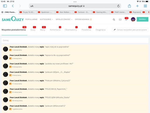 Jaki quiz?O tematyce:FNAFO tematyce:YouTuber’ówO tematyce:HorroruO tematyce:Poppy PlaytimeO tematyce:LekcjiO tematyce:Świąt Bożego narodzenia 1 Super! 21 Obserwuj autora Dodaj do ulubionych Następny quiz za: 10 AnulujRozwiąż teraz Jak ludzie Cię oceniają? Quiz w Poczekalni. Zawiera nieodpowiednie treści? Wyślij zgłoszenie Zgłoś za plagiat Zgłoś za nieodpowiednie treści Wyślij