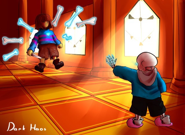 Sans zamkną cię w klatce z kości. Sans:Spróbuj uniknąć tego >:) Stałeś/aś aż Sans zastopował swoje ataki Sans:Nic? Nie unikasz? Jesteś leniwy/wa jak ja bo odeprałem ci moc determinacji? Sans otworzył klatkę Sans:Zacznij się starać :D Zaatakowałeś/aś Sansa wyglądało to jakbyś się teleportował Sans kiedy zobaczył ranę powiedział tylko HeHe teraz zabijesz Asgore'a? A już myślałem że się zaprzyjaźnimy Spoglądał na szalik/pelerynę swojego brata i rozpłyną się w powietrzu... I stwierdziłeś/aś...